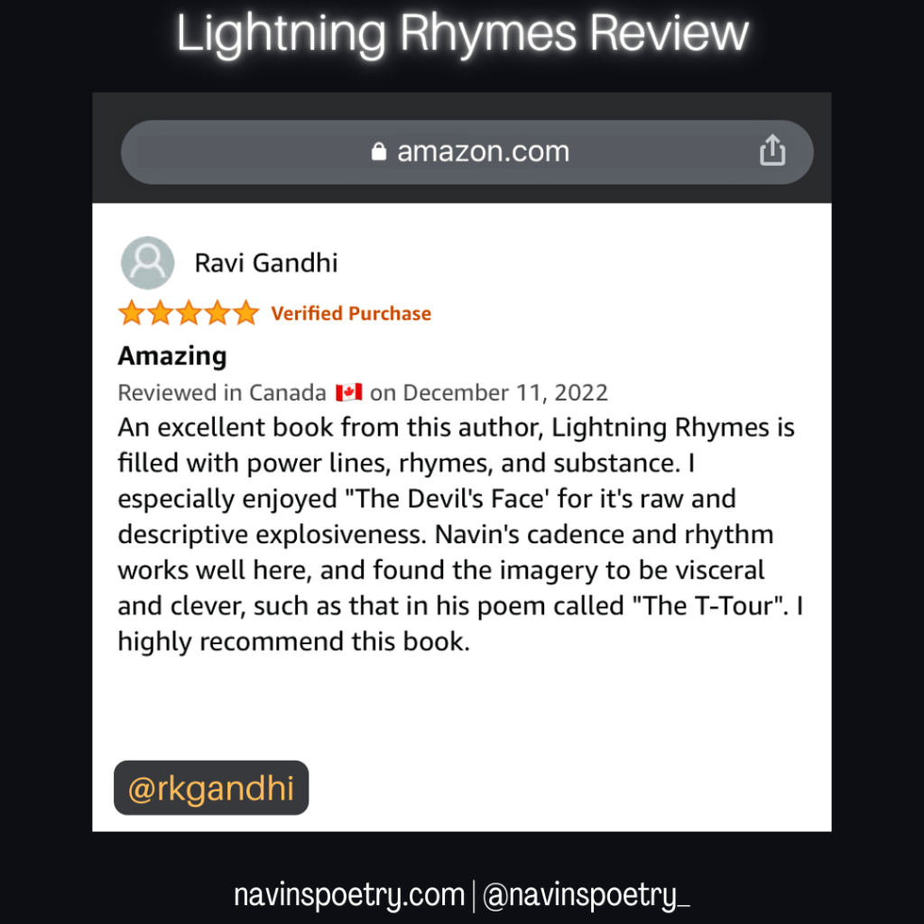 I would only humbly ask you to buy my book if you like what I write…if you connect with my rhymes…Lightning Rhymes is available in both paperback & eBook editions…